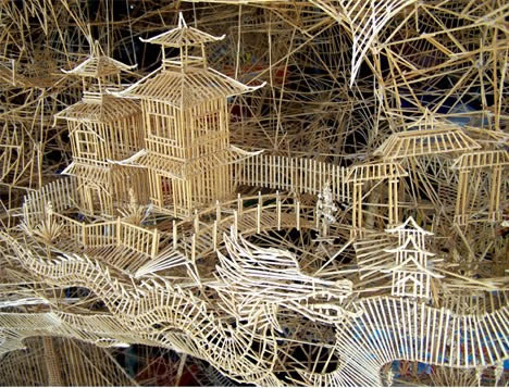 Pernah pakai tusuk gigi? Kalau buat kilik-kilik habis makan sudah biasa, tapi kalau digunakan untuk membuat model-model seperti perkotaan tentunya sungguh luar biasa. Dua seniman berikut ini membuktikannya.Kota Tusuk Gigi dari Stan Munro