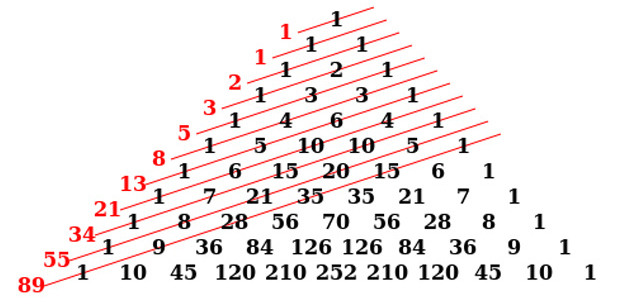 Pola bilangan fibonacci ini merupakan bilangan yang membentuk pola yang asalnya dari jumlah bilangan setelahnya yaitu hasil dua bilangan sebelumnya yang dijumlahkan.